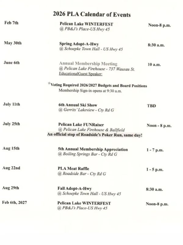 Pelican Lake Association is an Equal Opportunity Employer